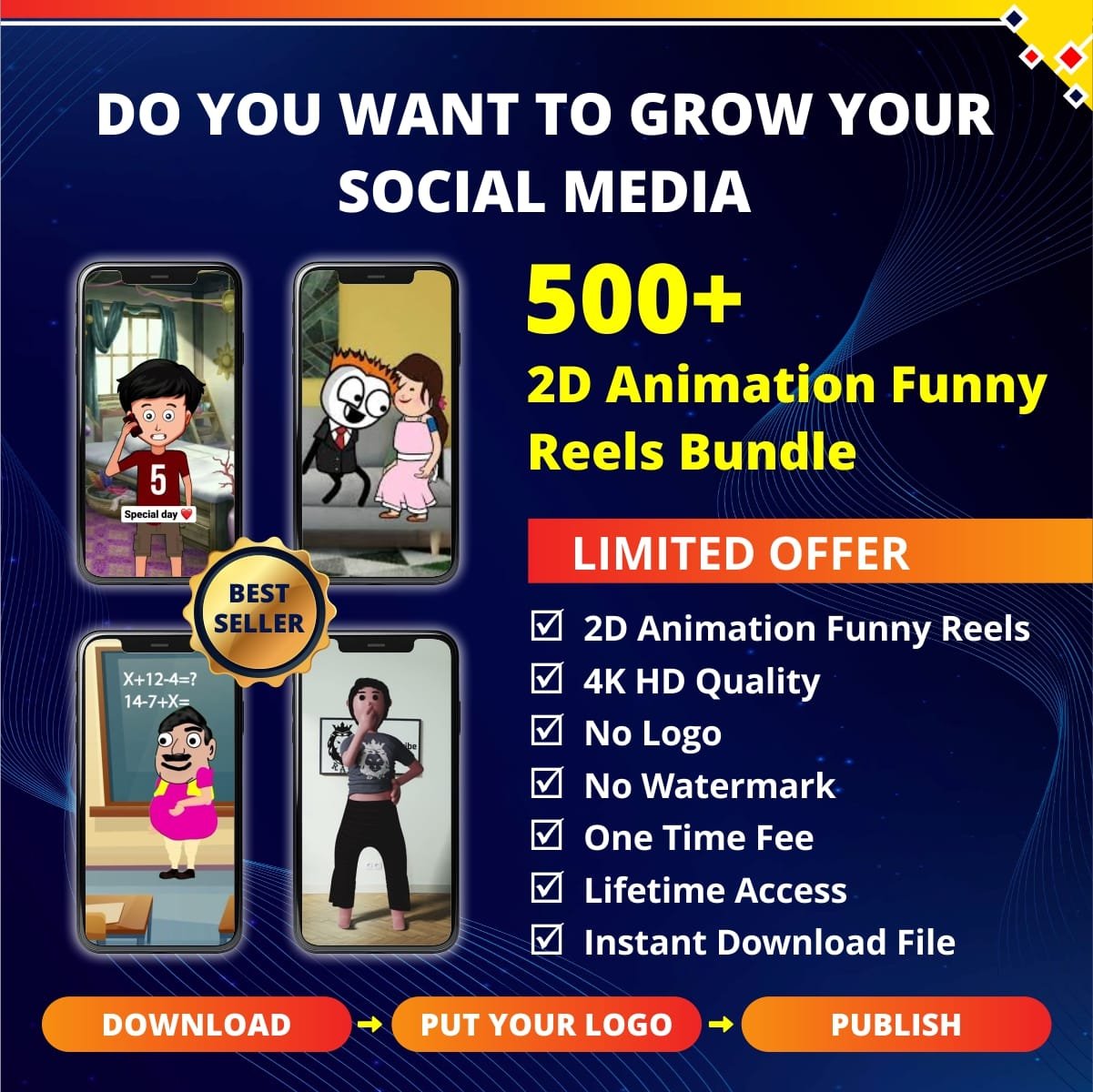 π Get 500+ 2D Animated Funny Reels