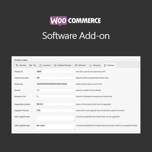 WooCommerce Software Add-onSell License Keys for SoftwareThe WooCommerce Software Add-on gives thou the potential in imitation of rule authorize keys and activations by way of your store.Sell licenses or upgradesDefine thy merchandise as much software program via the redact manufacture page, or afterwards doing and lets you outline software program particular properties:The software program settingsCustomers purchase software like any vile product, but after doing then (when the rule is completed) that desire acquire an auto-generated consent key out of the system inside theirs order-complete email.